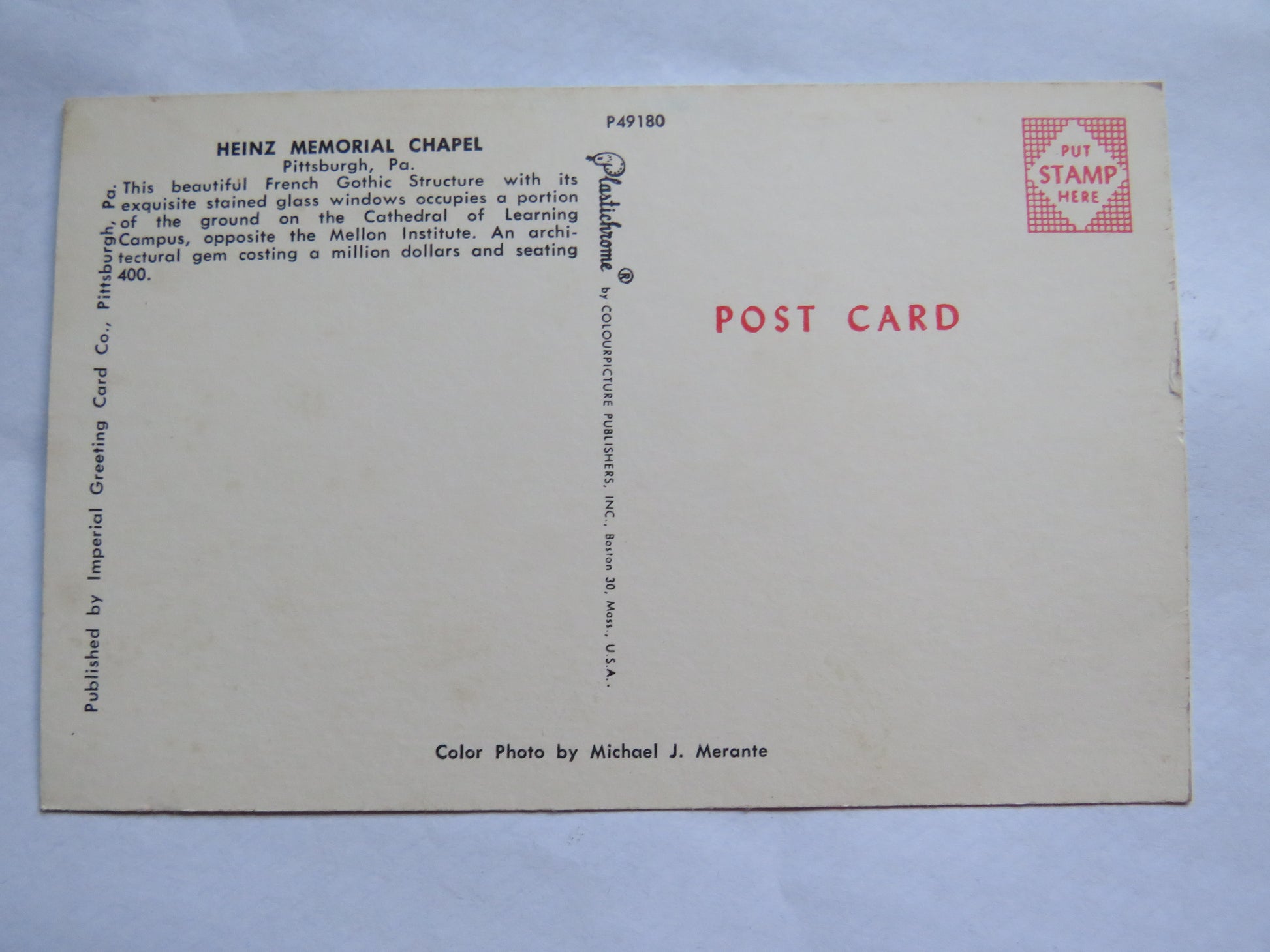 For Sale - Vintage Postcard of Heinz Memorial Chapel, Pottsburgh, Pa.