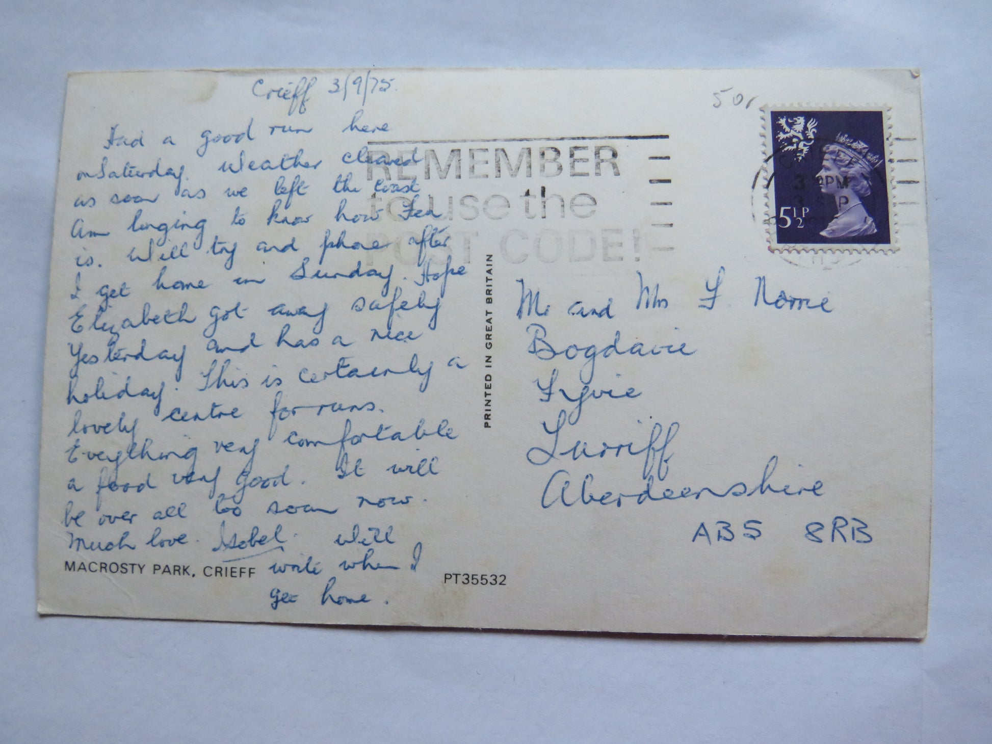 For Sale - Vintage Postcard of Macrosty Park, Crieff