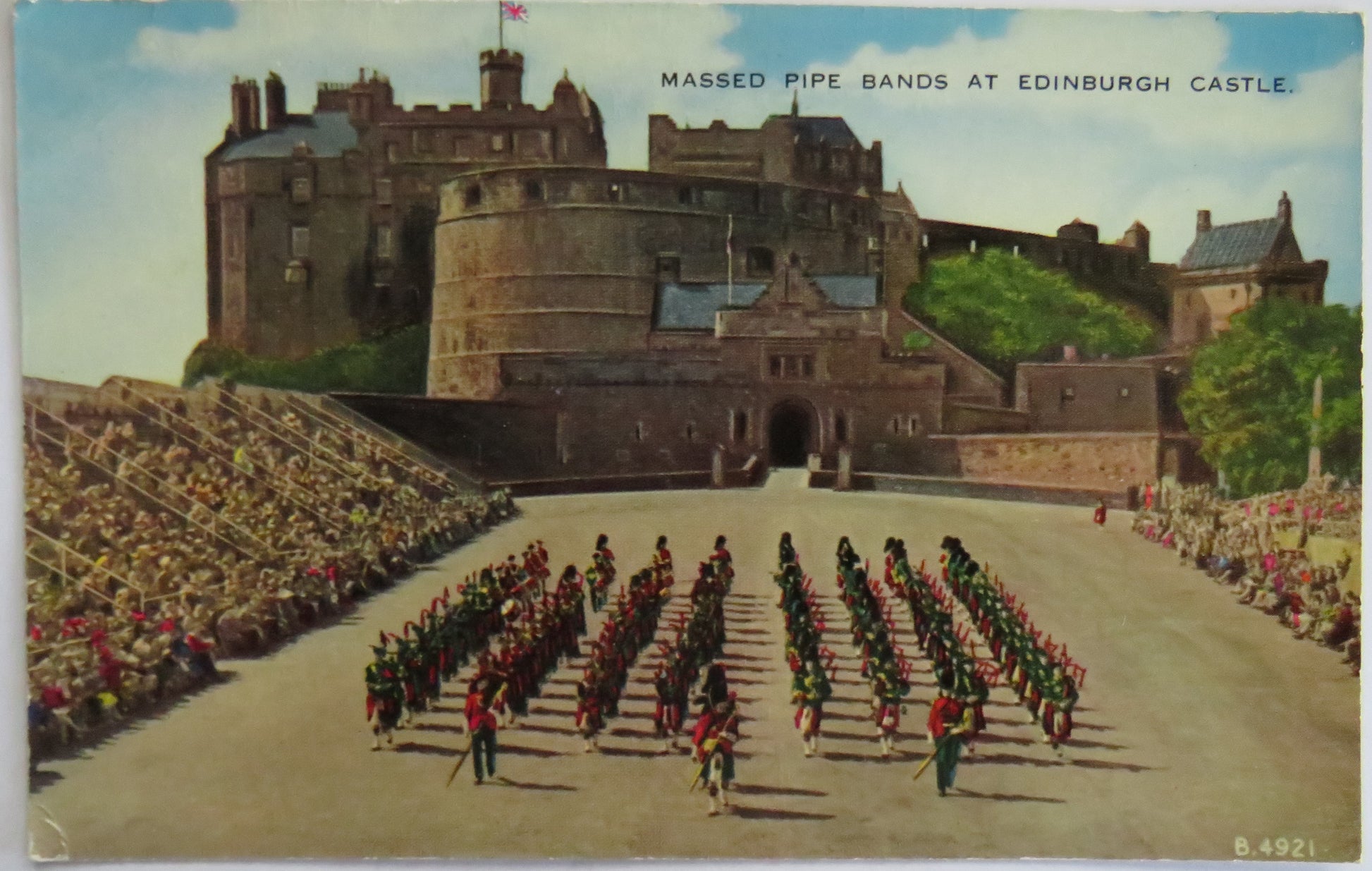 For Sale - Vintage Postcard Of Massed Pipe Bands At Edinburgh Castle