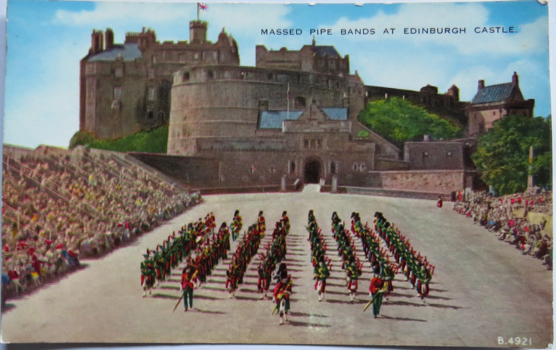 For Sale - Vintage Postcard of Massed Pipe Bands At Edinburgh Castle