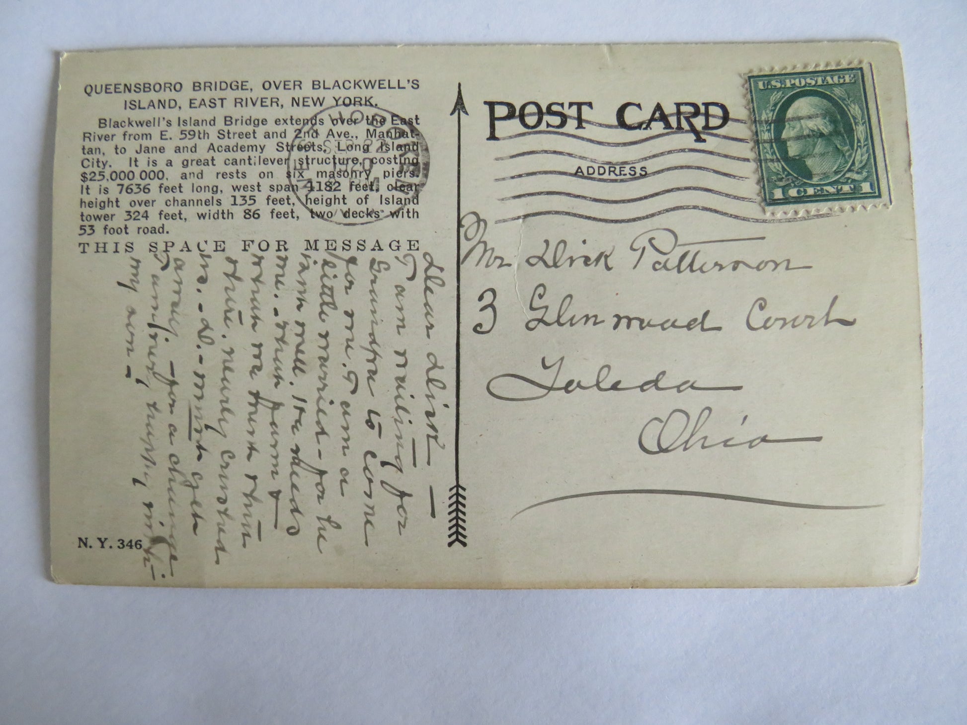 Vintage Postcard of Queensboro Bridge Over Blackwell's Island New York