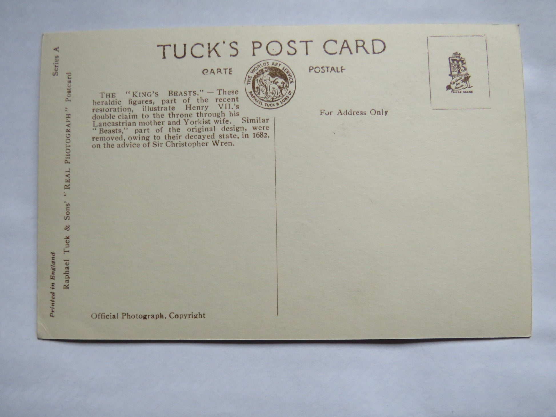 For Sale - Vintage Postcard of The "Kings Beasts" St. George's Chapel, Windsor