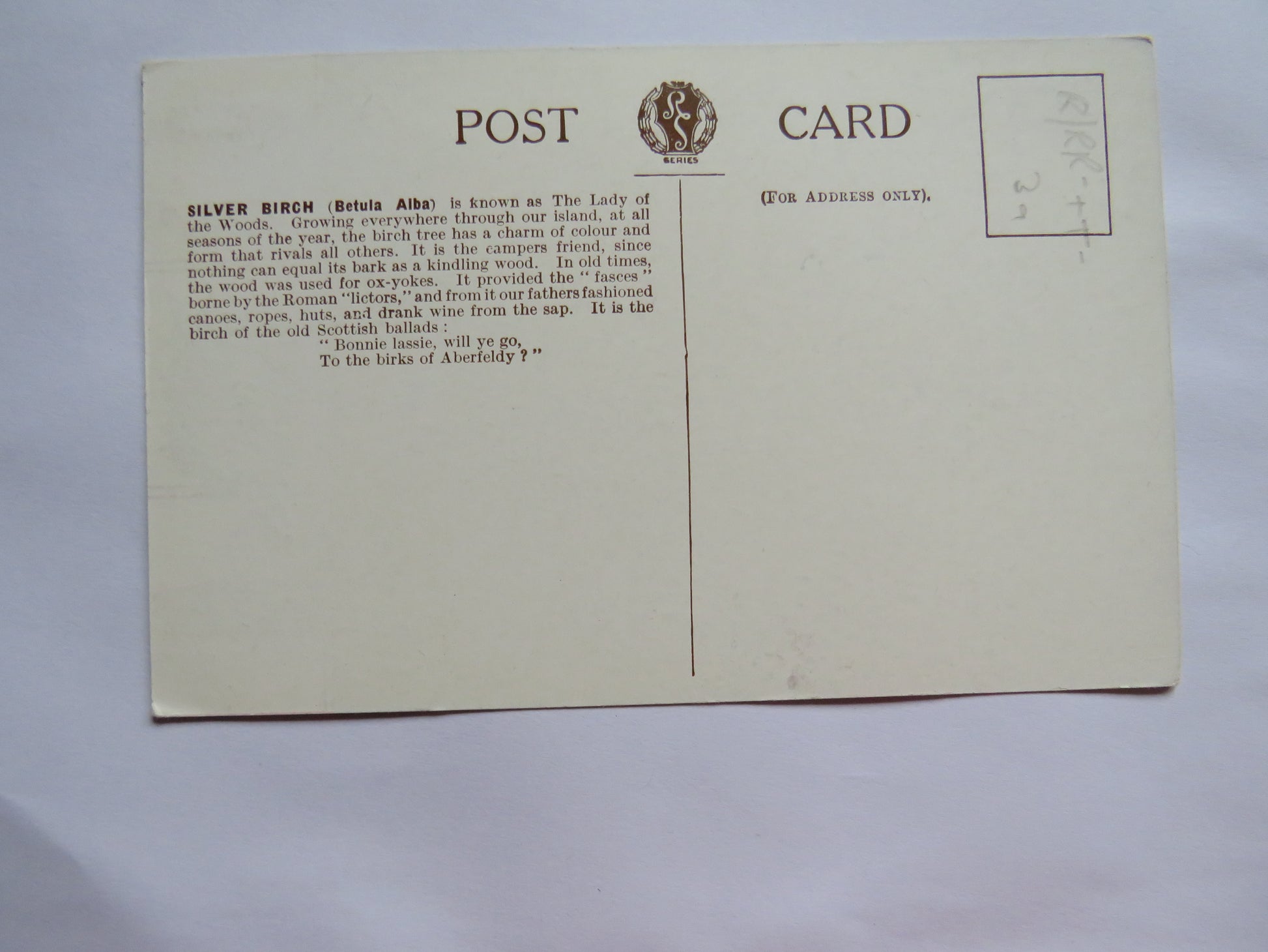 For Sale - Vintage Postcard of The Silver Birch (Betula Alba)