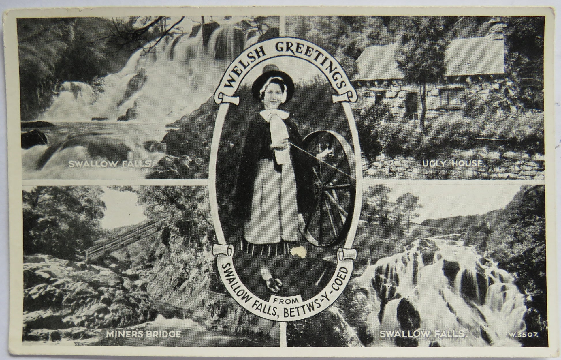 For Sale - Vintage Postcard of Welsh Greetings, Swallow Falls, Bettws-Y-Cooed