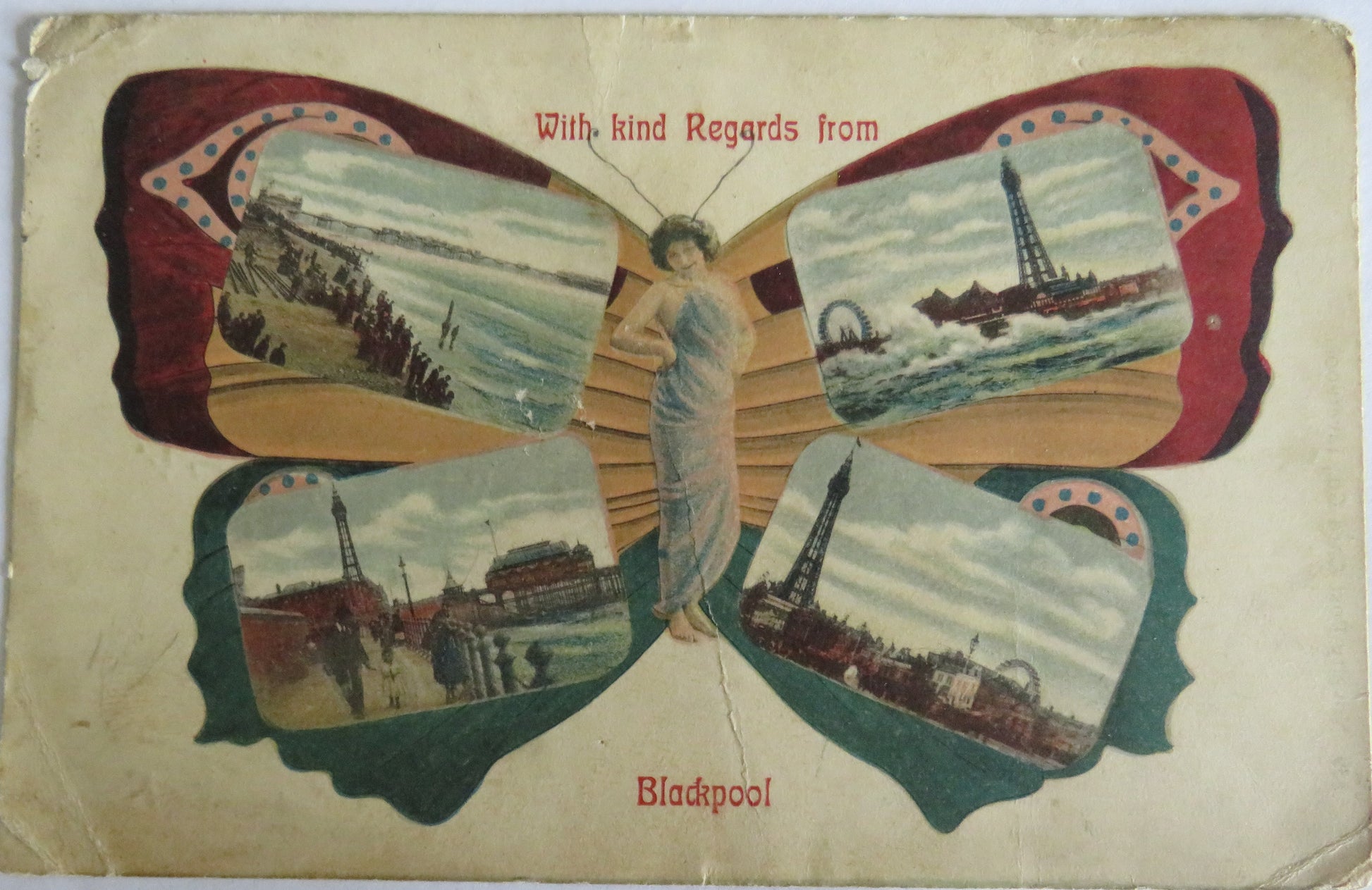 Vintage Postcard With Regards From Blackpool 1905