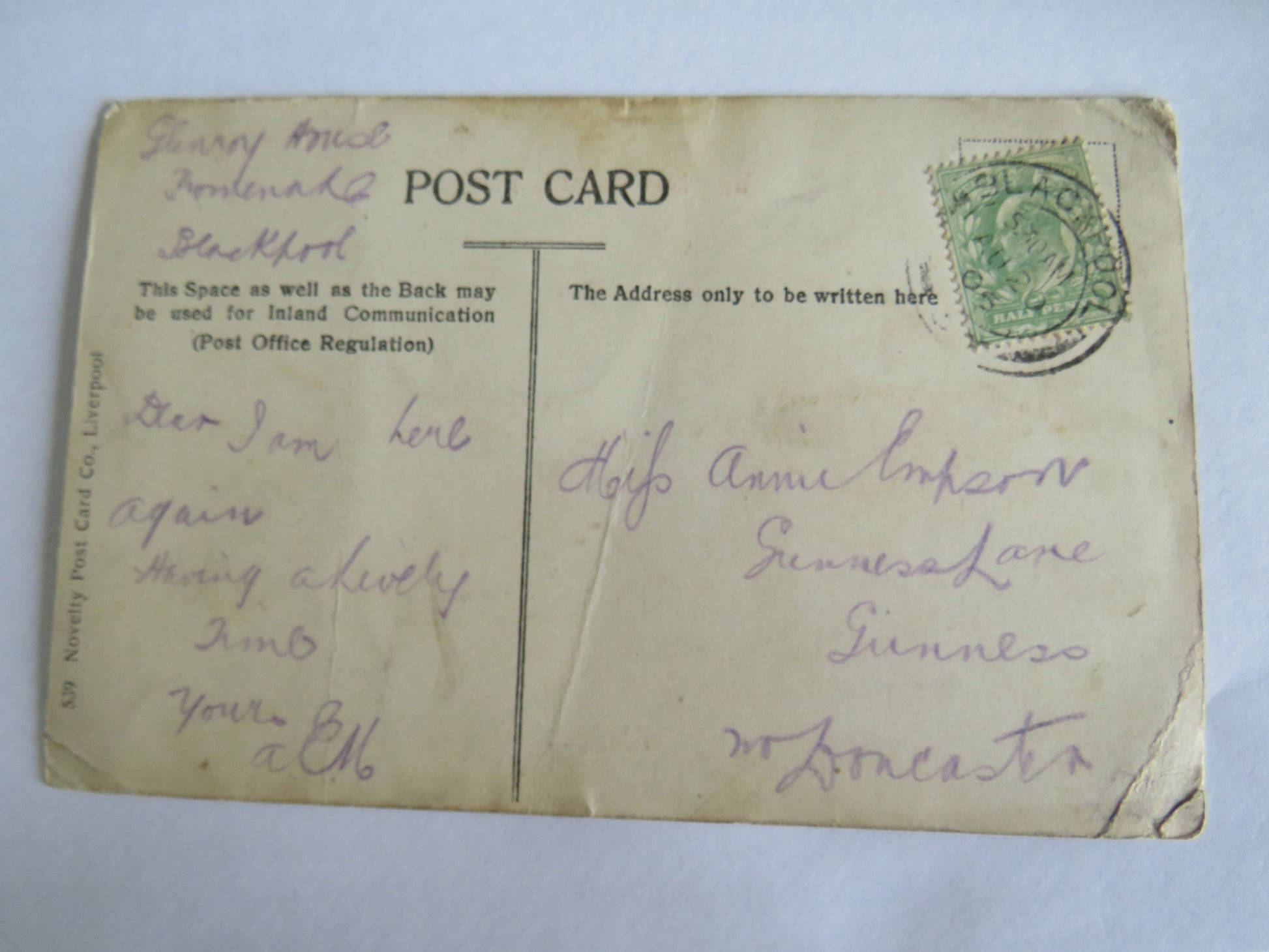 For Sale - Vintage Postcard With Regards From Blackpool 1905