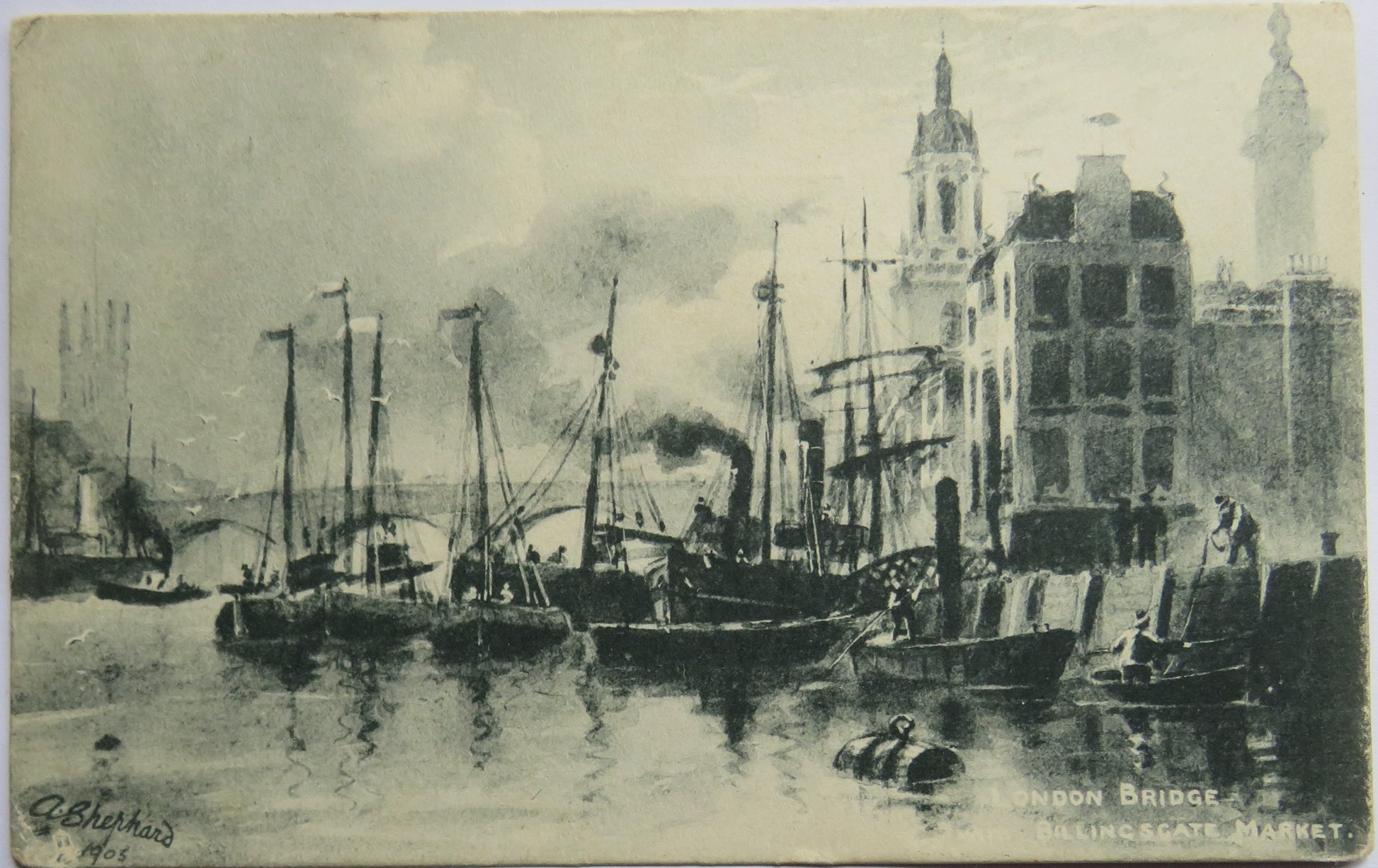 For Sale - Vintage Shipping Postcard London Bridge Billingsgate Market 1904