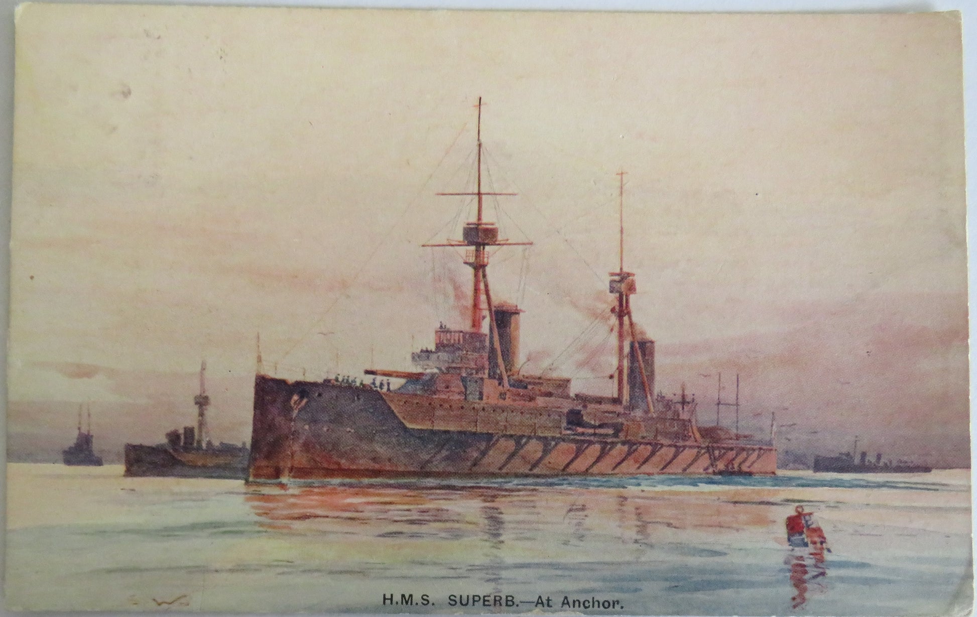 Vintage Warship Postcard of The H.M.S. "Superb"