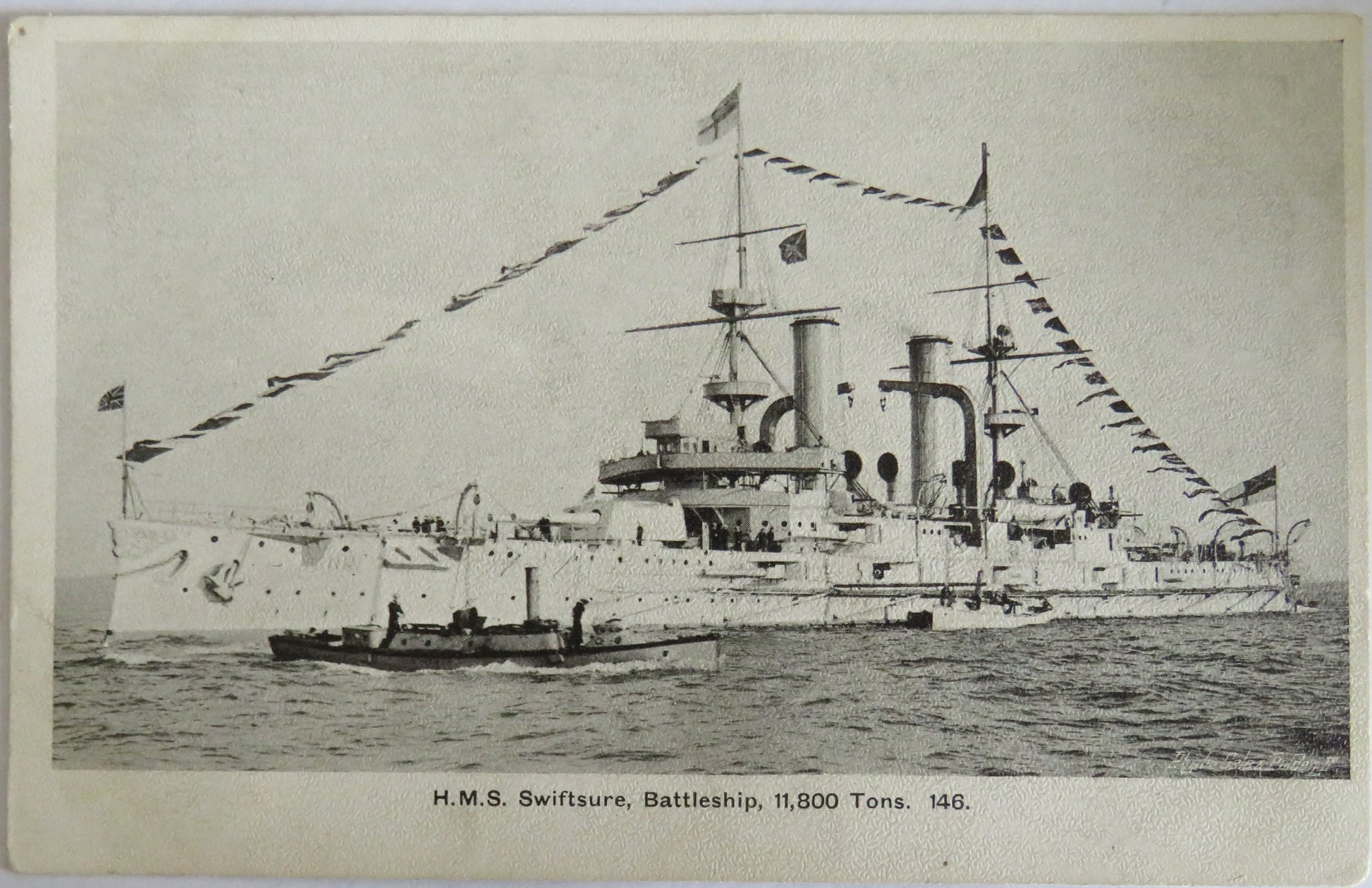 Vintage Warship Postcard of The H.M.S. "Swiftsure" Battleship
