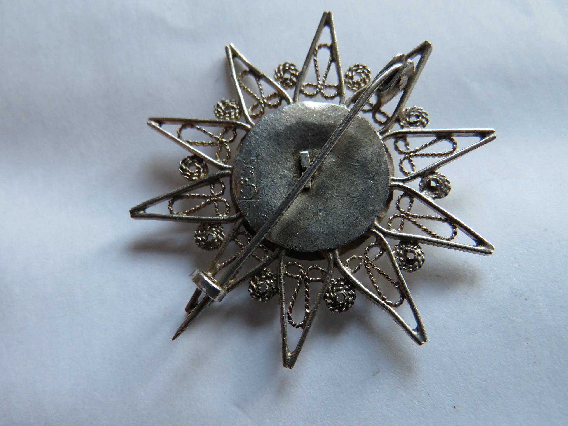 For Sale - Vintage White Metal Filigree Brooch With Arabic Marks On Reverse